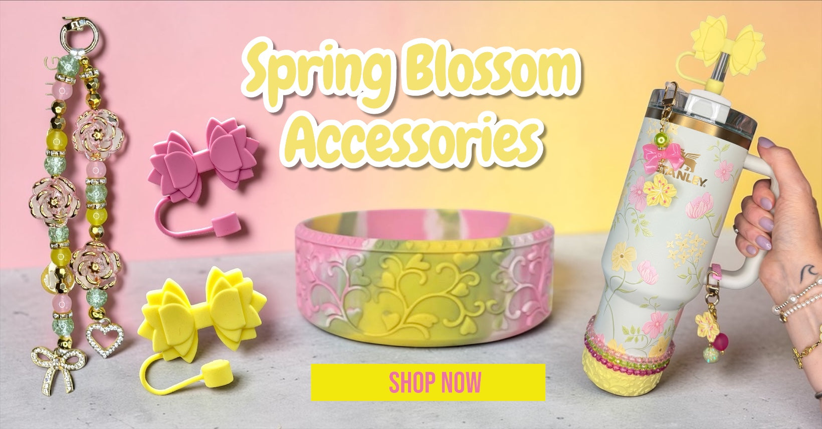 Shop the latest boots, bows, straw toppers, charms, and water bottle accessories designed to make your tumbler stand out. Grab the newest styles before they’re gone! 💖